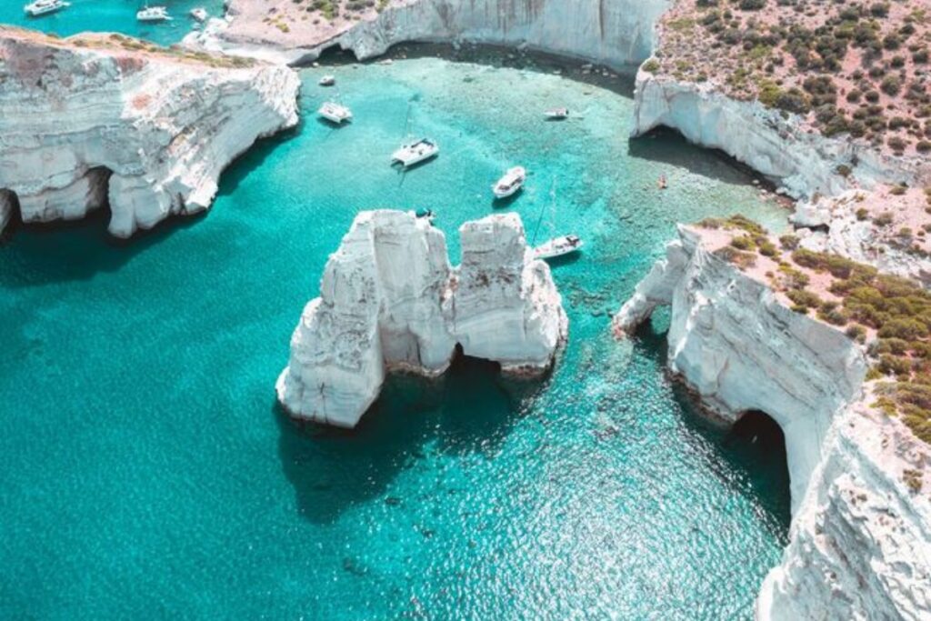Don’t miss visiting the magnificent Milos island, its natural landscapes contributed by volcanic activity, incredible rock formations, caves, and numerous jaw-dropping beaches will amaze you.
