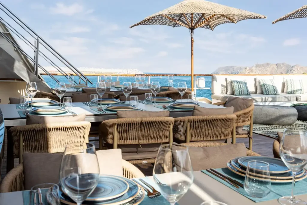 The yacht’s operating areas during the summer include the Aegean Sea & Cyclades, the Ionian Sea, and other picturesque regions of Greece. For those seeking adventure and entertainment, Nena offers an array of water toys and activities. These include a jet ski (license required), two stand-up paddleboards (SUP), and equipment for fishing and snorkeling, allowing guests to engage in their favorite hobbies and explore the beauty of the Greek islands.